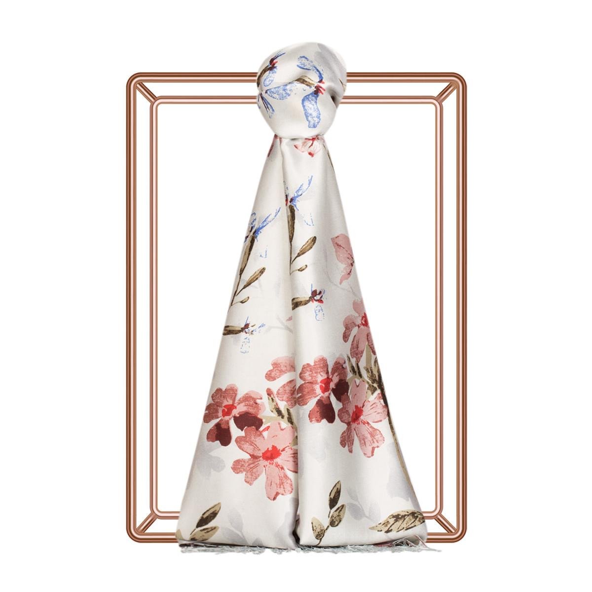 İpekevi Yonca Bahçesi Desenli İpek Şal Gümüş Rengi (SR0792)
