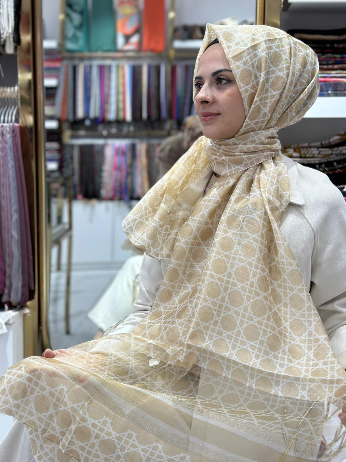 İthal Tül Şal Koyu Krem Rengi (SR0704)